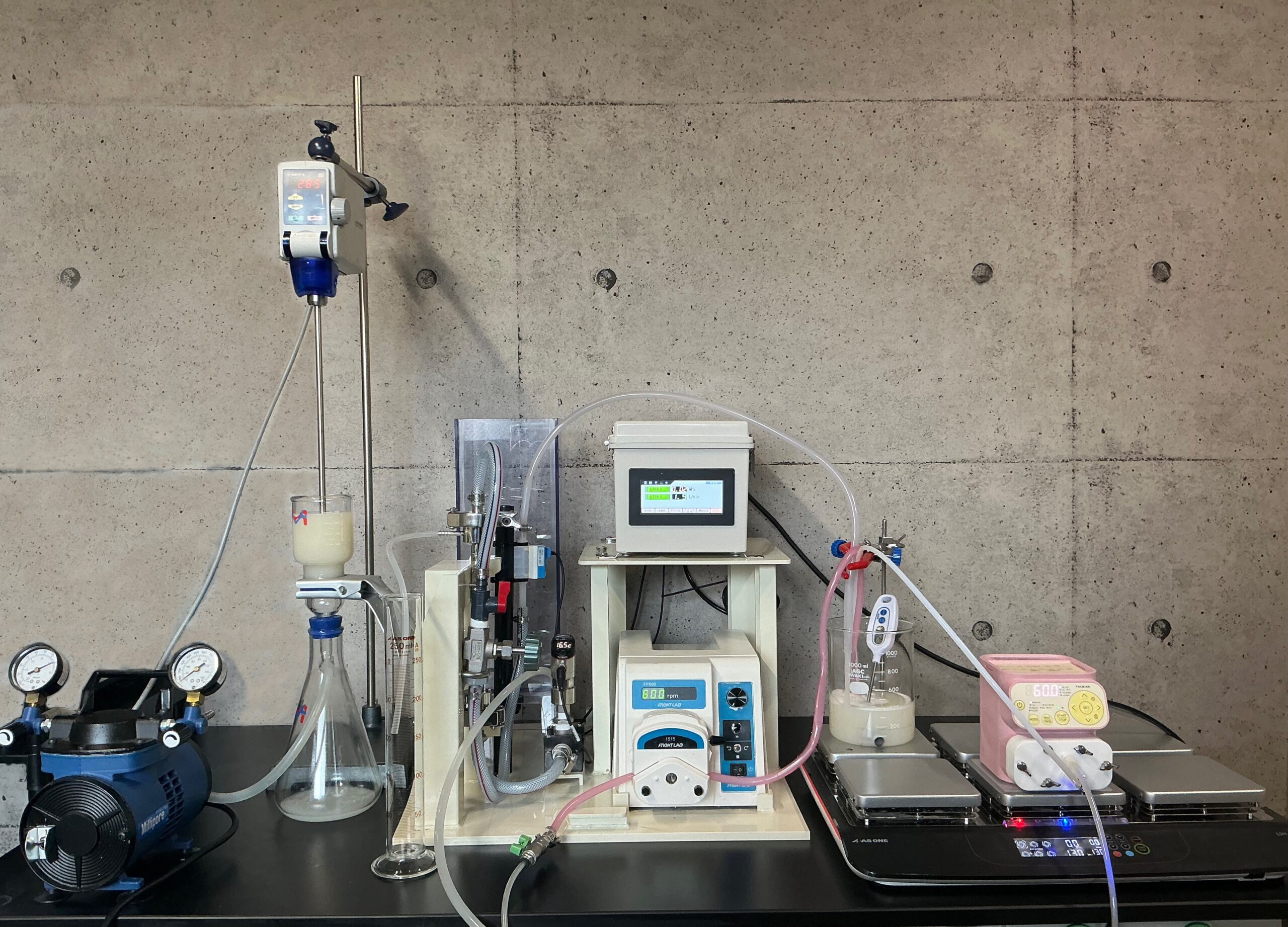 - セラミック膜を使って通水試験と水質分析を行い、